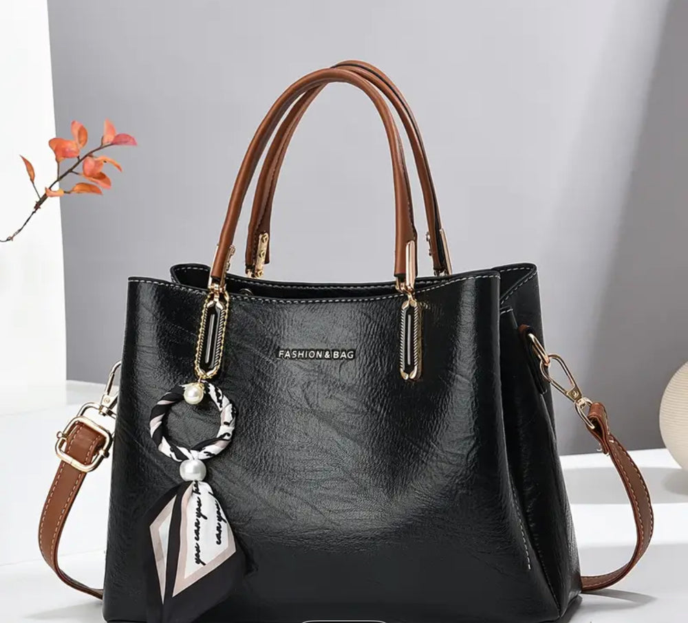 This faux leather handbag combines style and functionality with its spacious interior, perfect for keeping all your essentials organized. It features convenient short handles for easy carrying and a detachable long strap for versatile wear. Available in elegant green, classic black, warm rust, and versatile tan, it complements any outfit while providing roomy storage for your day-to-day needs.