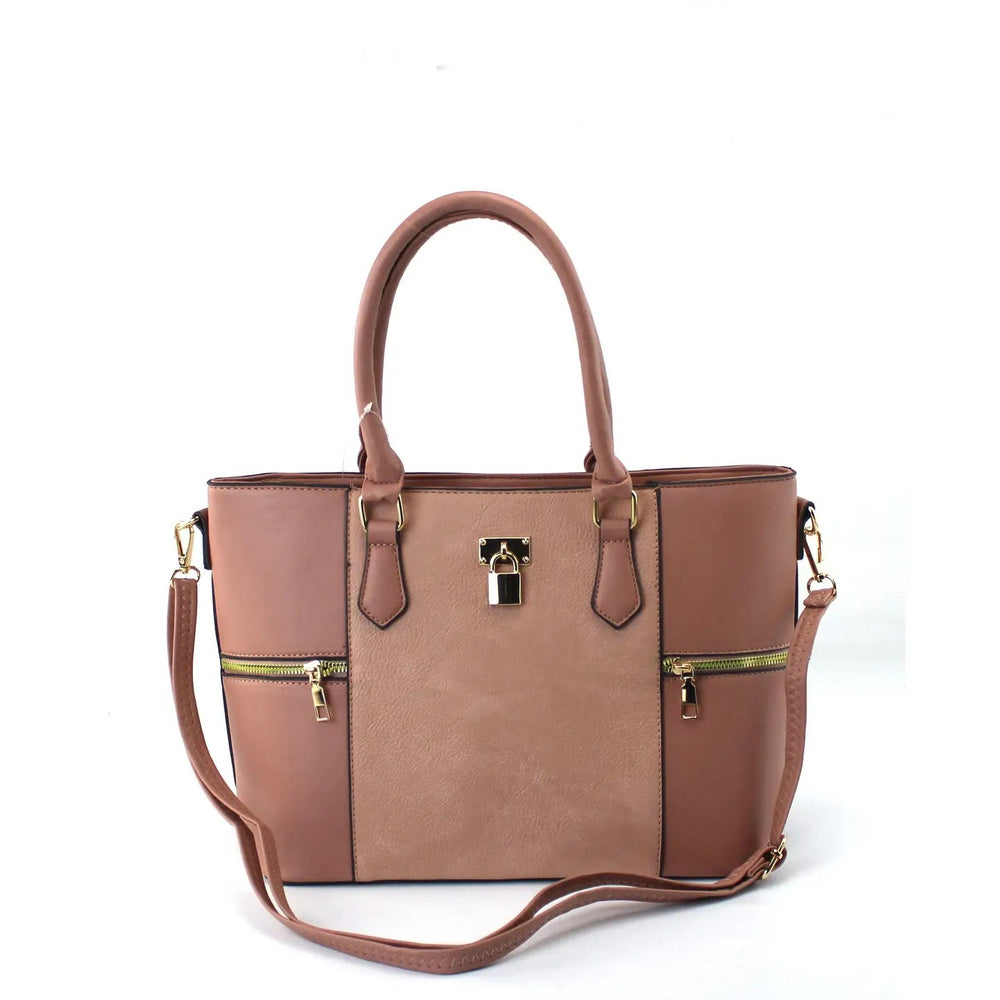 This shoulder bag offers versatile style with your choice of pink, khaki or black vegan leather. Designed for comfort, they feature a 6.5" shoulder handle drop and an adjustable strap extending up to 23" for a perfect fit. Secure your essentials with the zip closure spacious dimensions of 14.17"W x 9.84"H x 5.1"D. This bag will be perfect for your busy lifestyle.