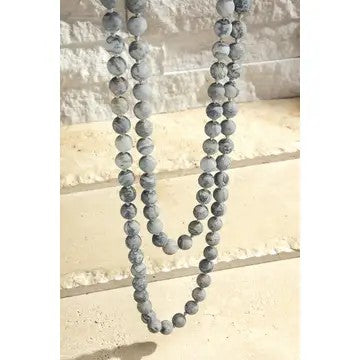 This long 60-inch necklace features gorgeous 8 mm, semi precious, natural jasper stones in a solid and color mix, creating a unique and earthy look. Its versatile length makes it easy to layer or wear alone, adding a warm, natural touch to any outfit.
