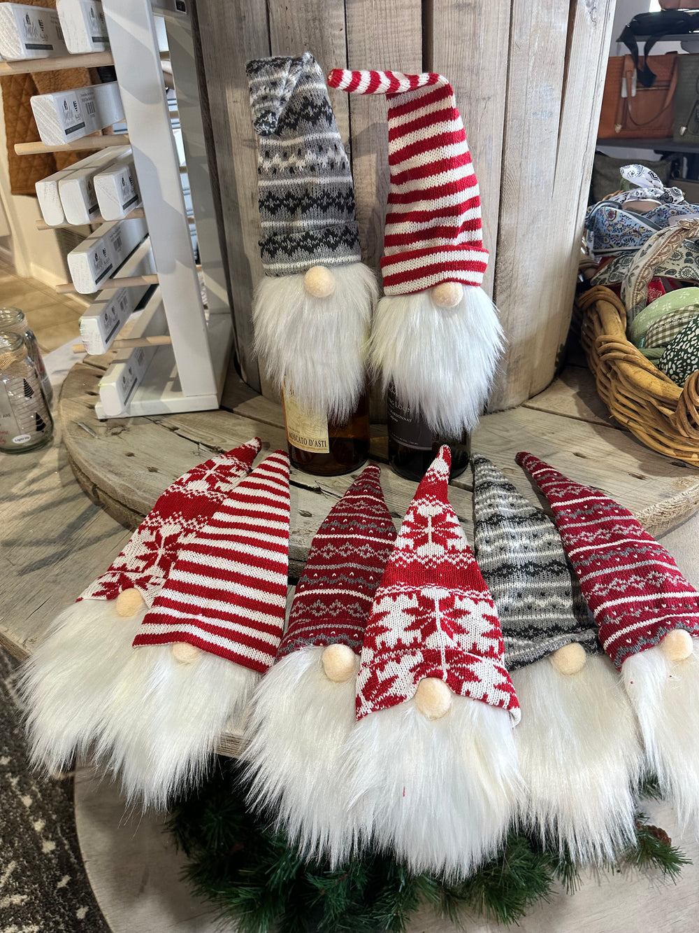 A gnome wine topper is a whimsical, decorative cover for wine bottles featuring a tall, pointy hat, soft beard, and often a wooden nose, inspired by Scandinavian folklore to bring good fortune and add festive, charming personality to holiday parties, gifts, or home decor, fitting standard bottles and serving as a unique hostess gift