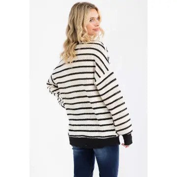 Keeping It Easy Black Stripe Knit Pullover Sweater