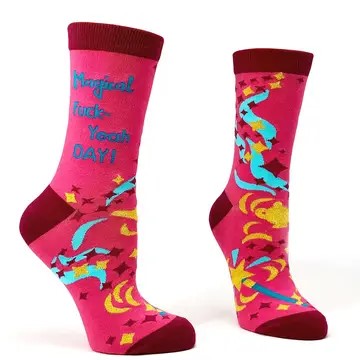 There's no better way to start a day off on the right foot than with these Magical F**k-Yeah Day women's crew socks. Made with soft materials and a stylish design, these socks are as comfortable as they are fun. Perfect for ladies' shoe sizes 5 to 10, these socks are sure to add a touch of magic to your day.