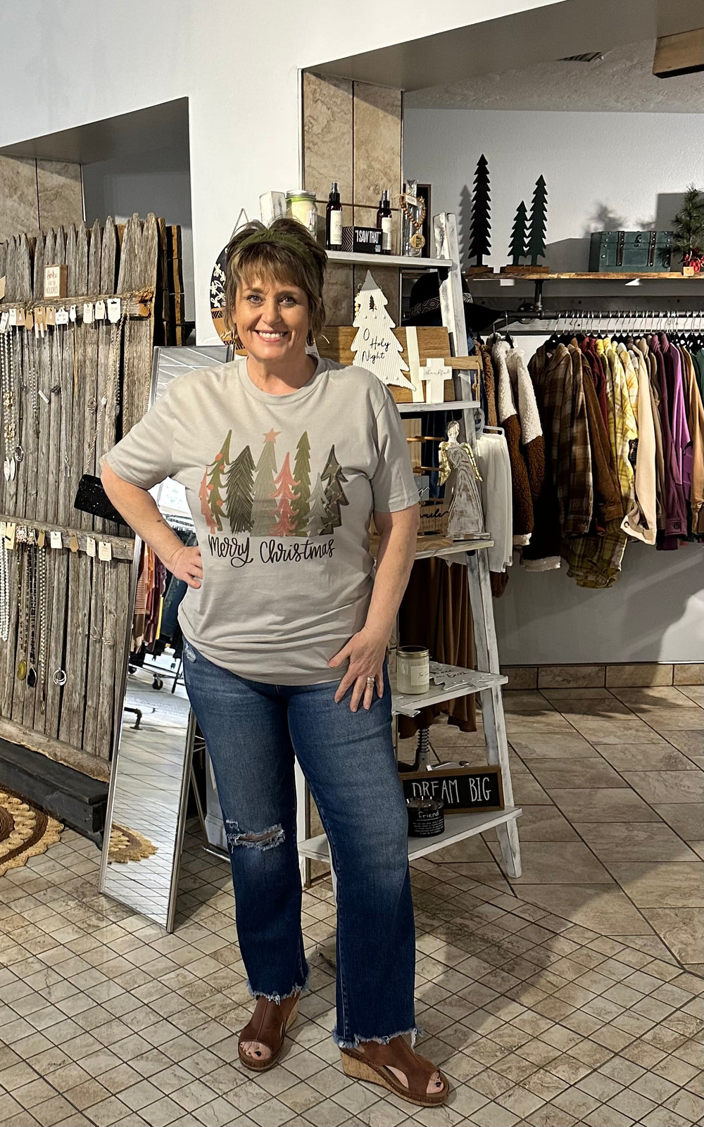 *Merry Christmas Pink Trees Short Sleeve Tee (Size Large)