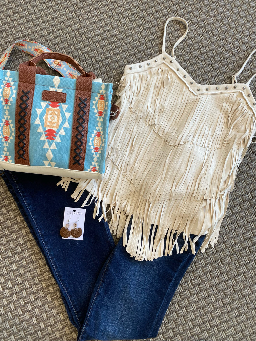 *Send Me A Signal Natural Suede Spaghetti Strap Fringe Tank