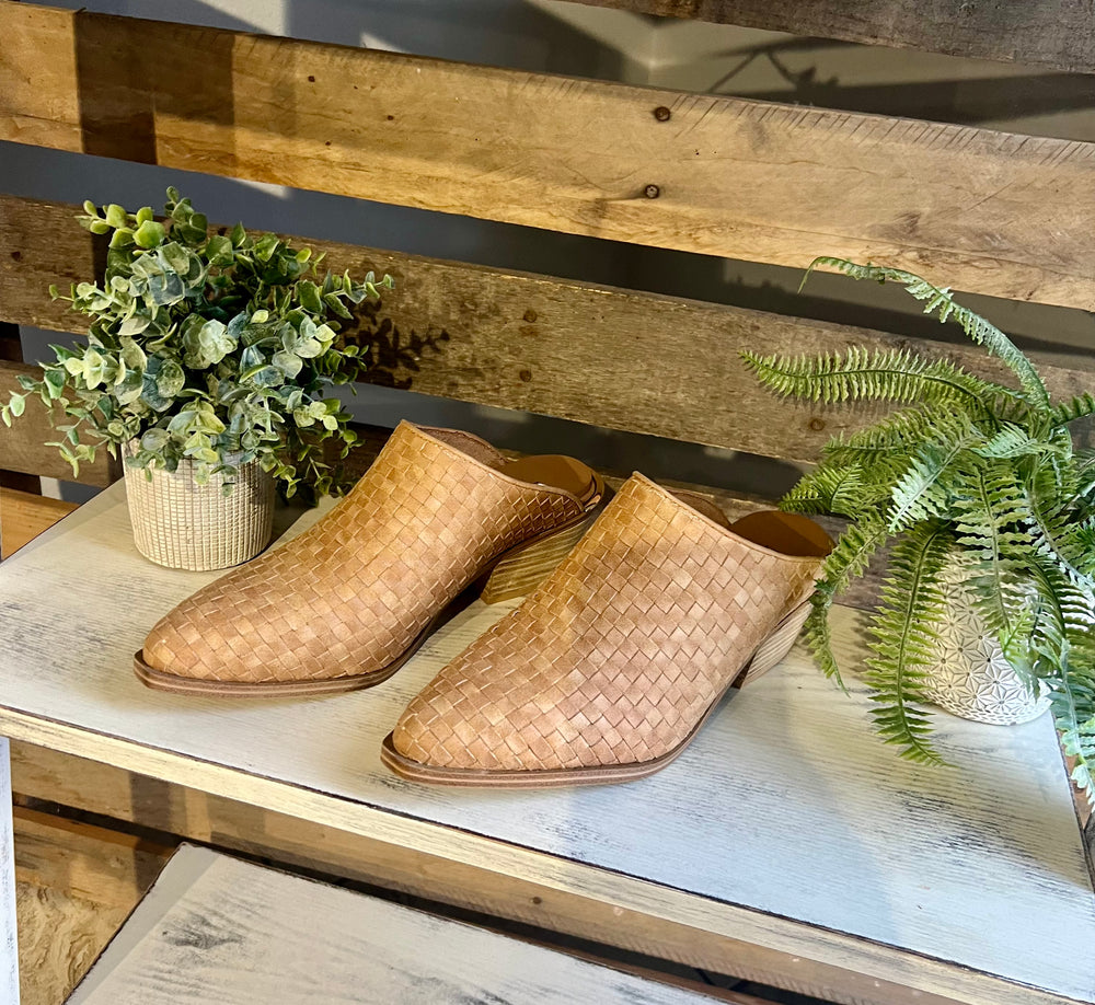 TGIF Corky Camel Heel Braided Slip-on Boot