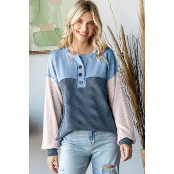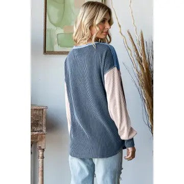 *Easy Life Plus Dark Denim Color Block Long Sleeve Top