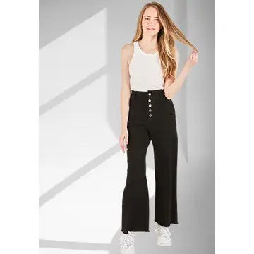 Kinsley Black Stretchy Button Wide Leg Pants