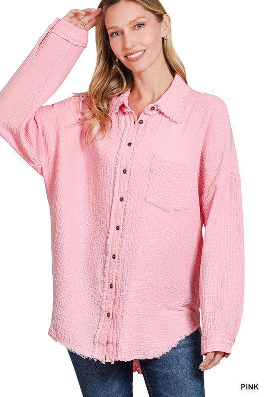 *Just Be Gauze Pink Fray Hem Top