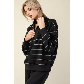 Keeping It Real Black/Cream Stripe Partial Zip Top