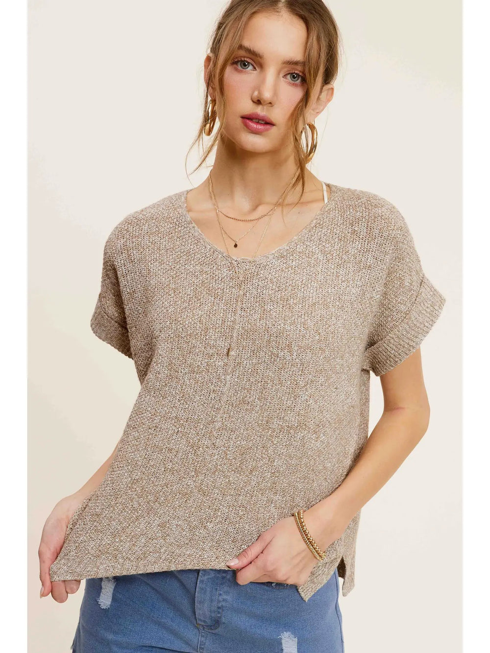 This taupe short sleeve pullover top is made of super soft and lightweight fabric that makes easy to wear everyday. It offers a relaxed fit, stretchy fabric, high low hemline and side slit detail. Pair this top with shorts or pants for an awesome style