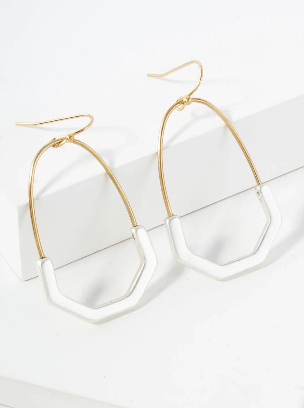 These lightweight matte silver and worn gold earrings combine modern geometric shapes with effortless style, offering a fresh and contemporary look. Crafted for all-day comfort, they provide a bold visual statement without feeling heavy. Perfect for elevating your everyday outfits with a touch of sleek sophistication.