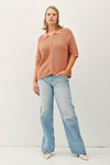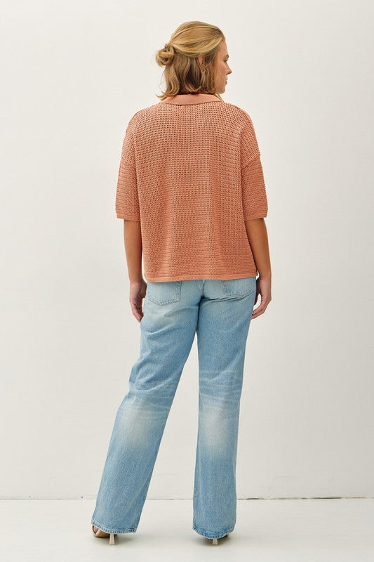 *Get Hooked Plus Dusty Peach Boxy Crochet Button Sweater Top